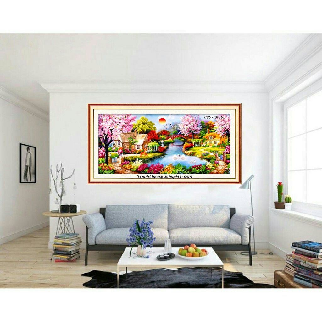 Sở thích & Sưu tầm > Dụng Cụ May Vá || Tranh thêu chữ thập Phong cảnh mùa xuân LV3007(84*43) - tự thêuCòn hàng