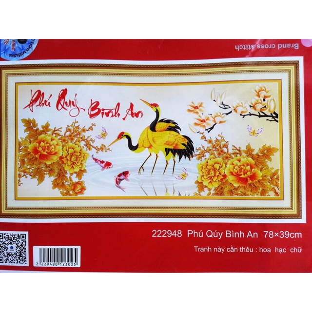 Sở thích & Sưu tầm > Dụng Cụ May Vá || Tranh thêu chữ thập,Phú Quý Bình An,222948,78x39cm chưa thêuCòn hàng