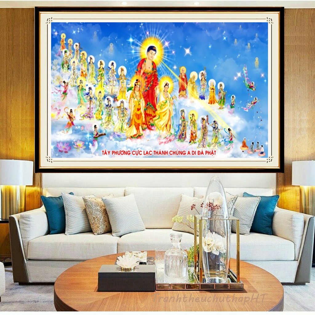 Giới thiệu Tranh thêu chữ thập Tây Phương Cực Lạc Thánh Chúng 113*63cm - tự thêu