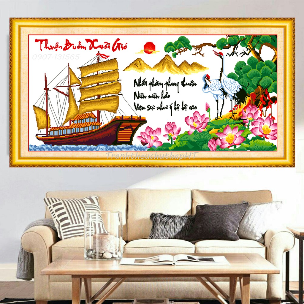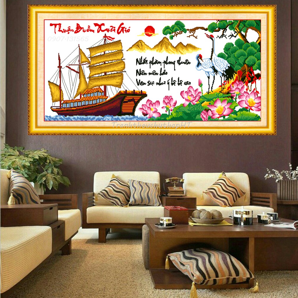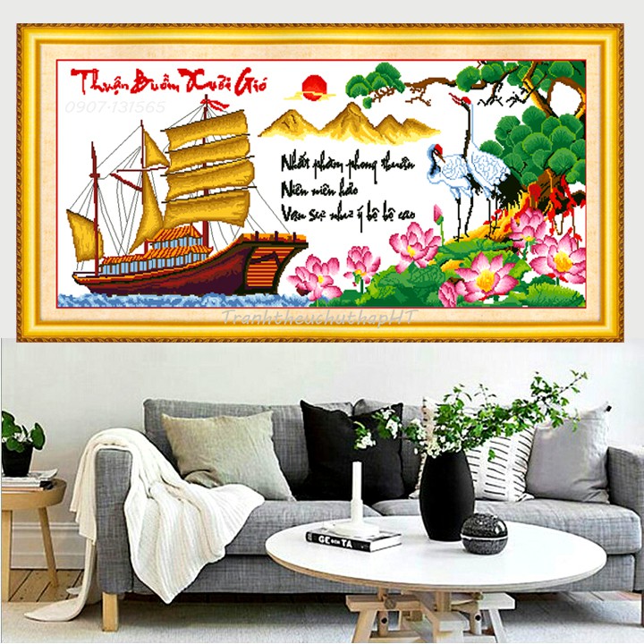 Giới thiệu Tranh thêu chữ thập thuận buồm xuôi gió LV3265 - tự thêu