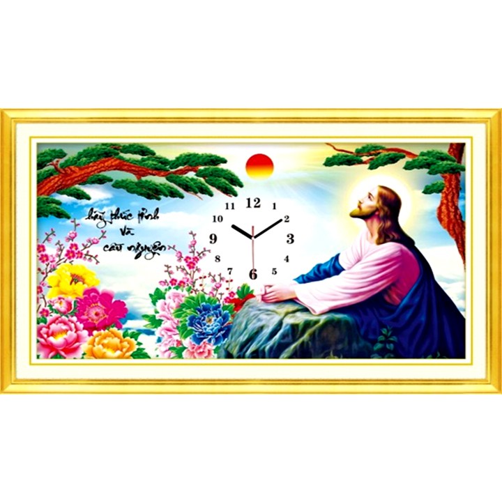 Tranh thêu chữ thập, tranh đính đá Chúa Jesu cầu nguyện - tự thêu