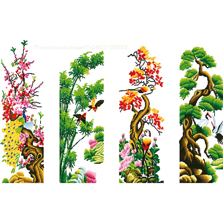 Tranh thêu chữ thập tứ quý 4 mùa LV3282 - tự thêu