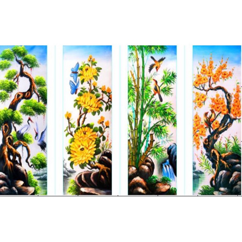 Sở thích & Sưu tầm > Dụng Cụ May Vá || Tranh thêu chữ thập Tứ Quý Tùng Cúc Trúc Mai 3D LV3346 (110x75) chưa thêuCòn hàng