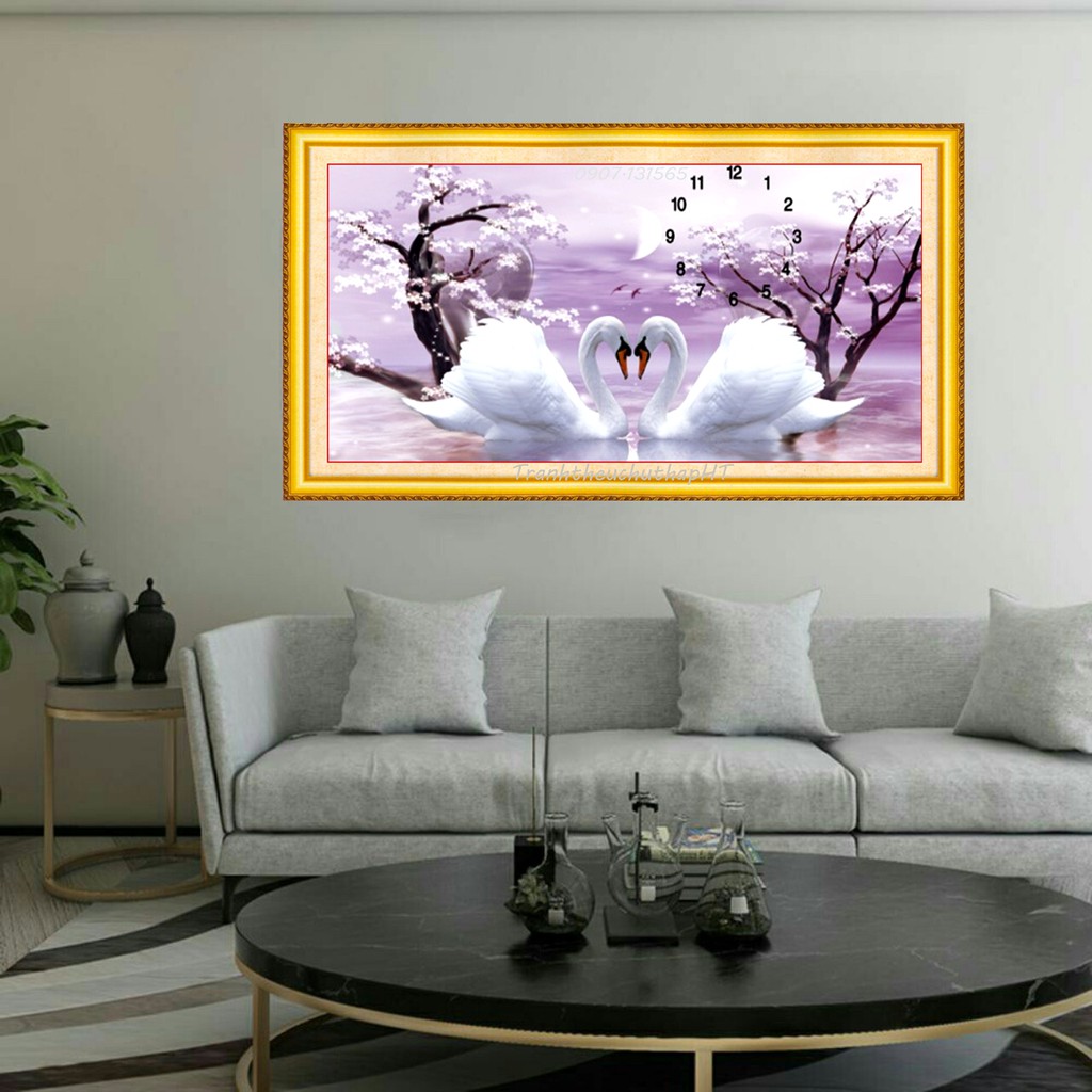 Mẫu này rất đẹp, thêu đôi thiên nga, cây lá, hoa trên nền vải 3D in sắc nét, rõ, đẹp, màu sắc tươi sáng, sang trọng (phần thêm như hình đính kèm).