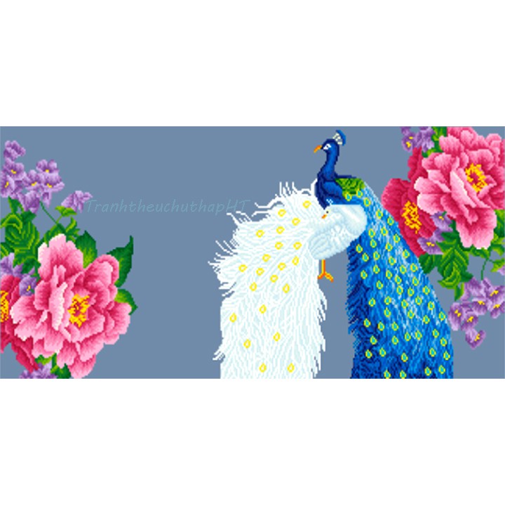 Mẫu này rất đẹp, thêu chim công, cây lá và hoa mẫu đơn trên nền vải 3D in sắc nét, rõ, đẹp, màu sắc tươi sáng, sang trọng (phần thêm như hình đính kèm).