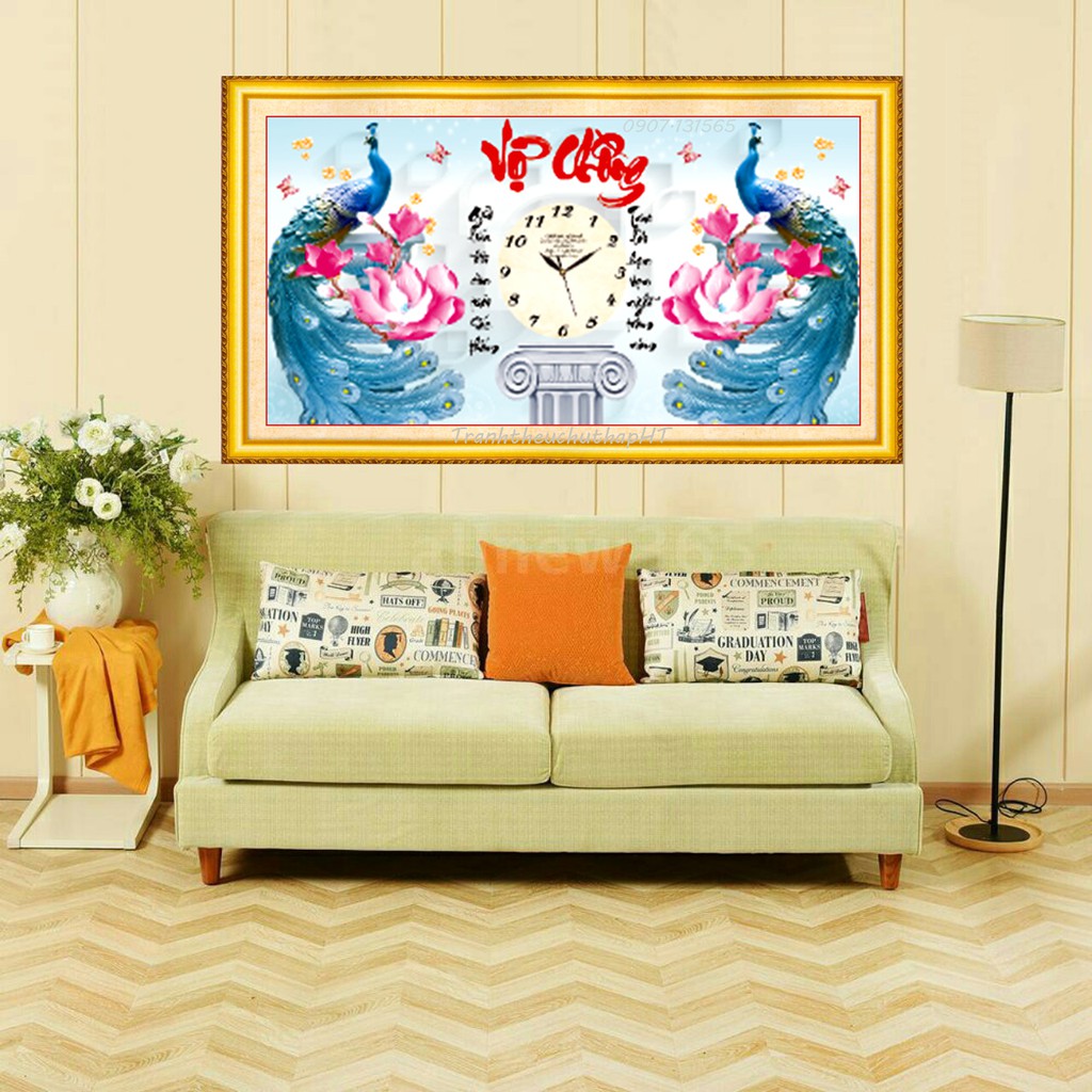 Mẫu này rất đẹp, thêu chim công, chữ và hoa lan trên nền vải 3D in sắc nét, rõ, đẹp, màu sắc tươi sáng, sang trọng. Phần thêu như hình đính kèm