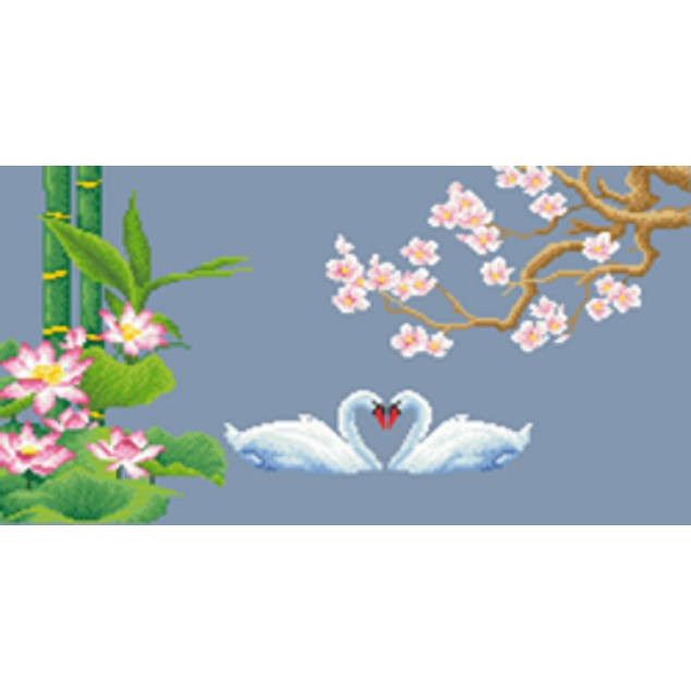Tranh thêu 3D cần thêu : 2 thiên nga, sen, trúc, đào như hình 2