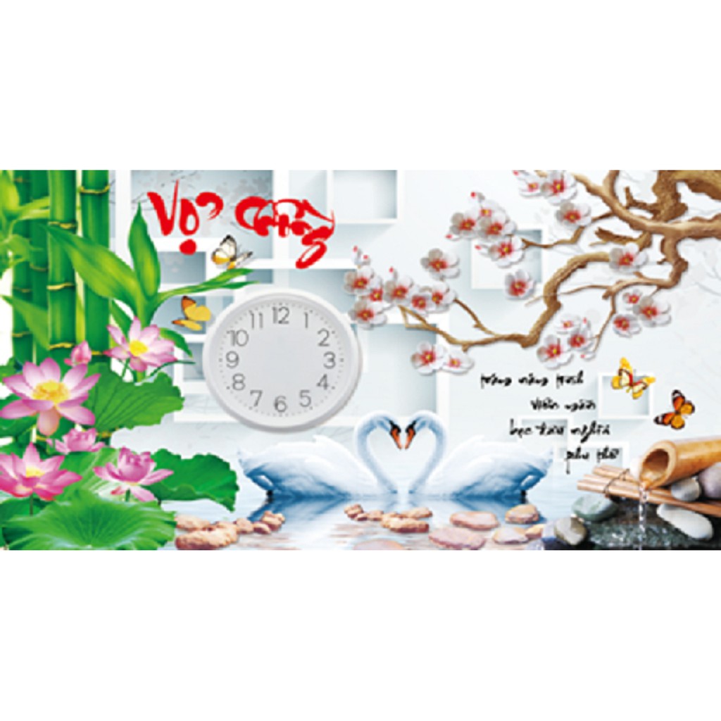 Sở thích & Sưu tầm > Dụng Cụ May Vá || Tranh thêu đồng hồ Vợ Chồng Thiên Nga 3D LV3164Còn hàng