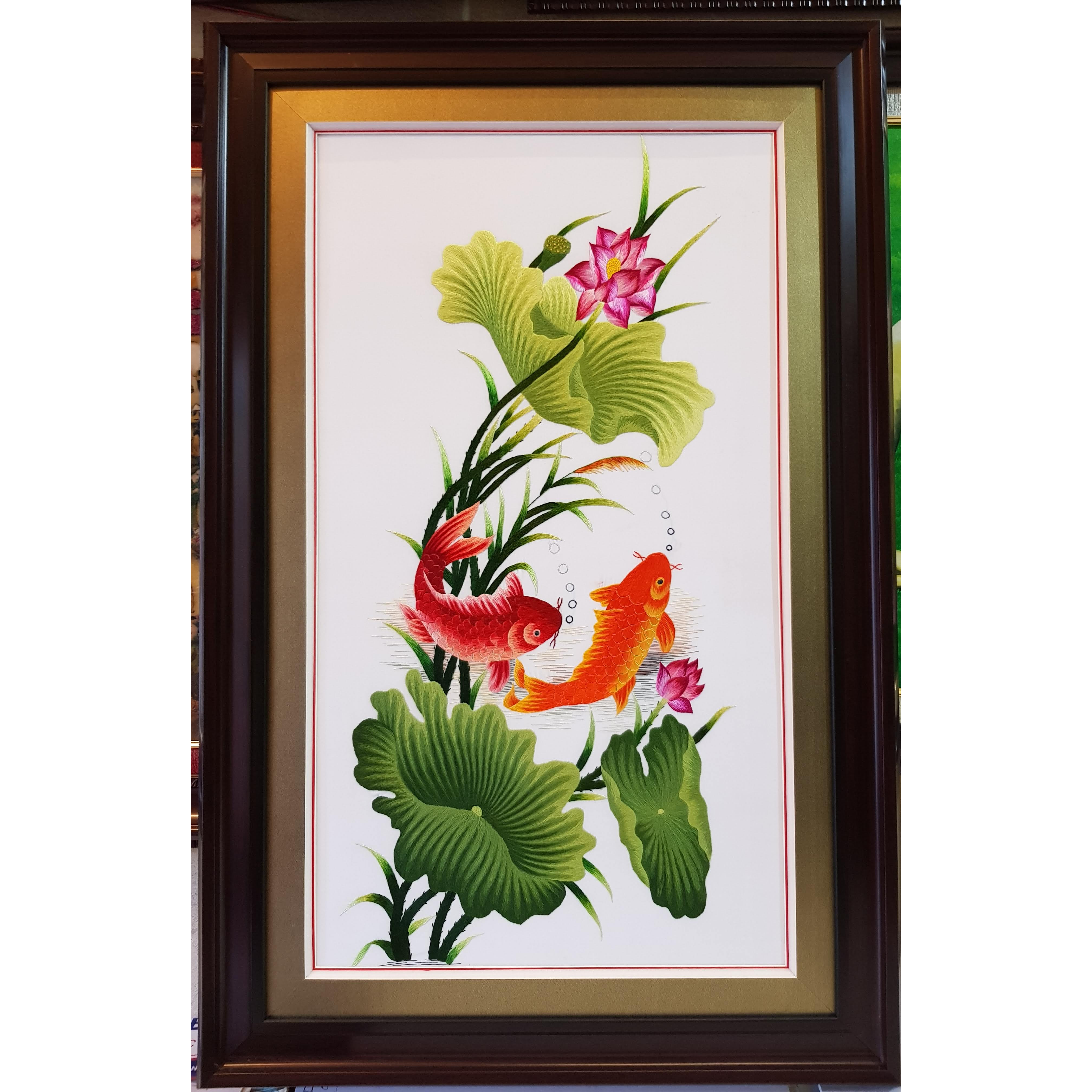 Giới thiệu TRANH THÊU TAY -HOA SEN CÁ CHÉP ( SONG NGƯ SUM VẦY)