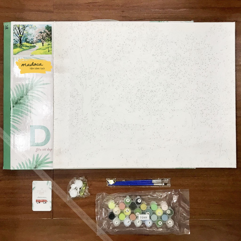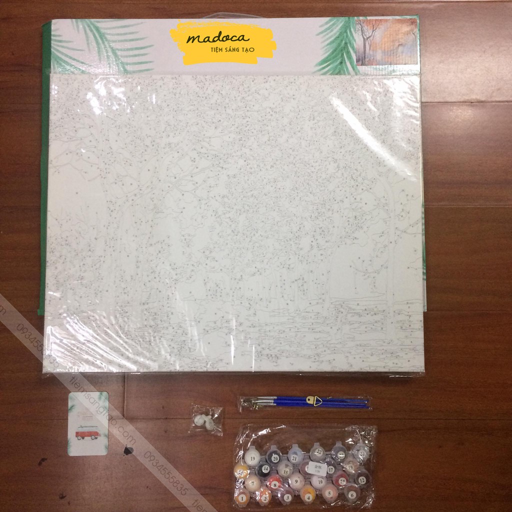 - Bộ màu vẽ có đánh số: Các lọ màu vẽ được đánh số tương ứng với số được đánh trên tranh, có chất lượng cao cấp và màu sắc rực rỡ, độ bền màu cao, an toàn cho sức khỏe người dùng.