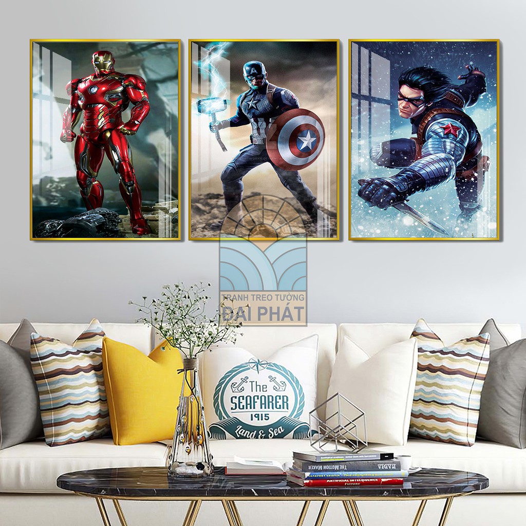 tranh tráng gương marvel anh hùng cho phòng ngủ bé trai siêu ngầu