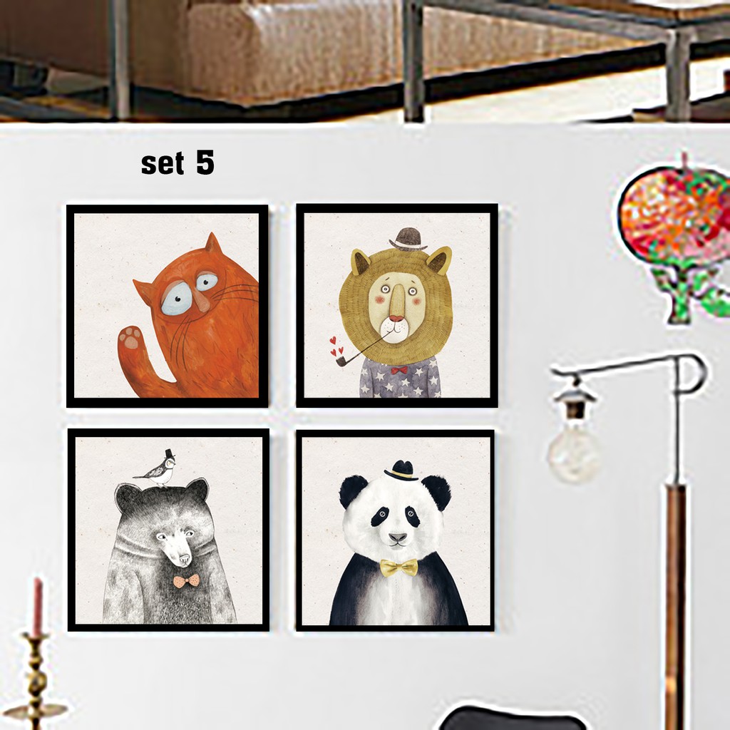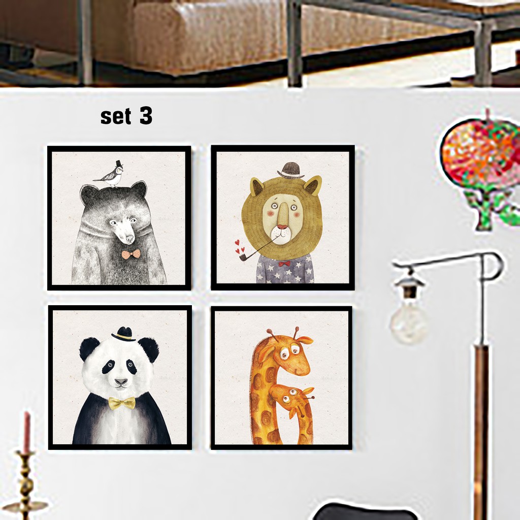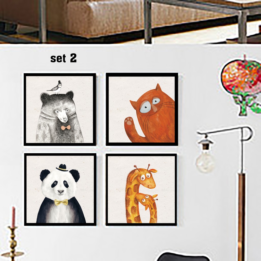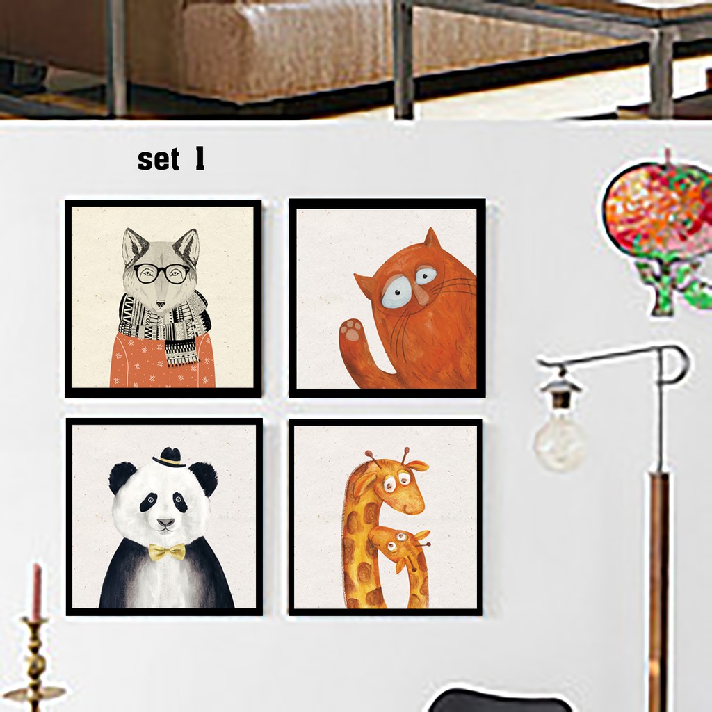 Set tranh trang trí phòng trẻ em.Kích thước 30x30cm/tấm x4 tấm. Hoặc 35x35cm/tấm x4 tấm.