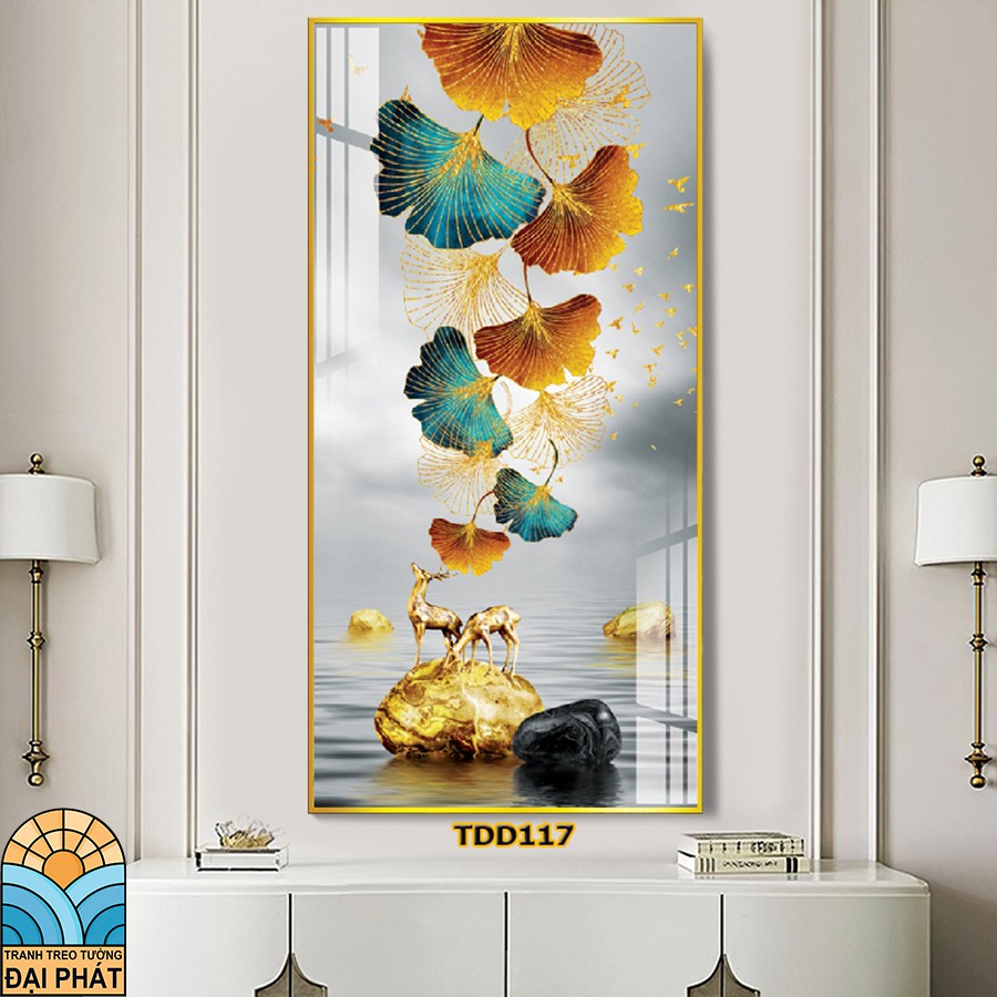 tranh treo tuong lá dọc tráng gương sang trọng sale giá rẻ