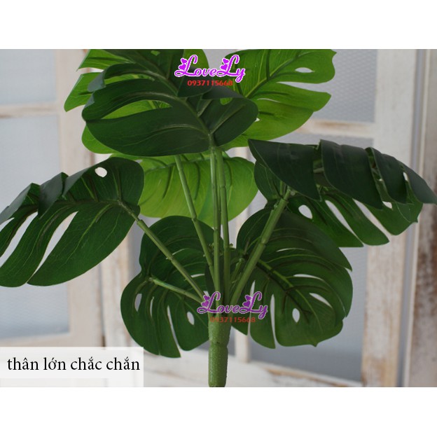 Kích Thước: Chiều cao 30cm. Lá to từ 10cm. Gồm khoảng 6 lá một câyChất Liệu: Lá bằng nhựa và cuống lõi thép bọc nhựa.