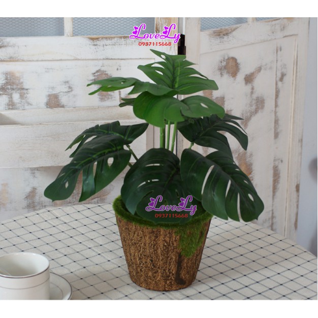 Cây Trầu Bà Lá Xẻ (lá rùa) 6 lá giả đẹp trang trí nhà phong cách Bắc Âu