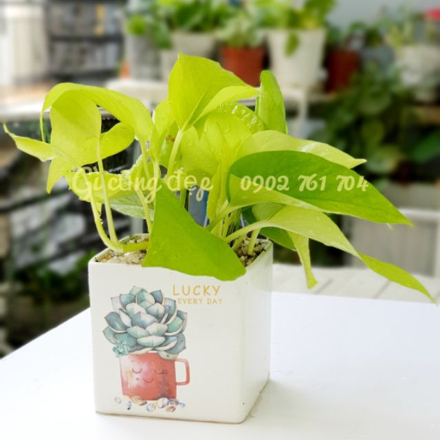 Trầu bà Thái loại chậu sứ hoặc chậu nhựa mỏngLá xanh ngọt.