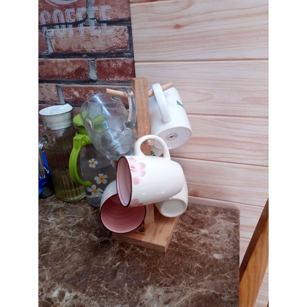 Giới thiệu Cây treo 6 ly, giá để cốc chén thân vuông bằng gỗ
