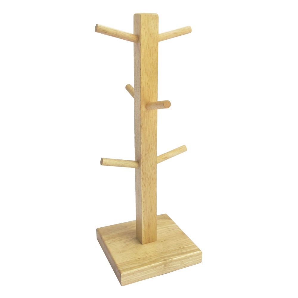 Cây treo 6 ly, giá để cốc chén thân vuông bằng gỗ