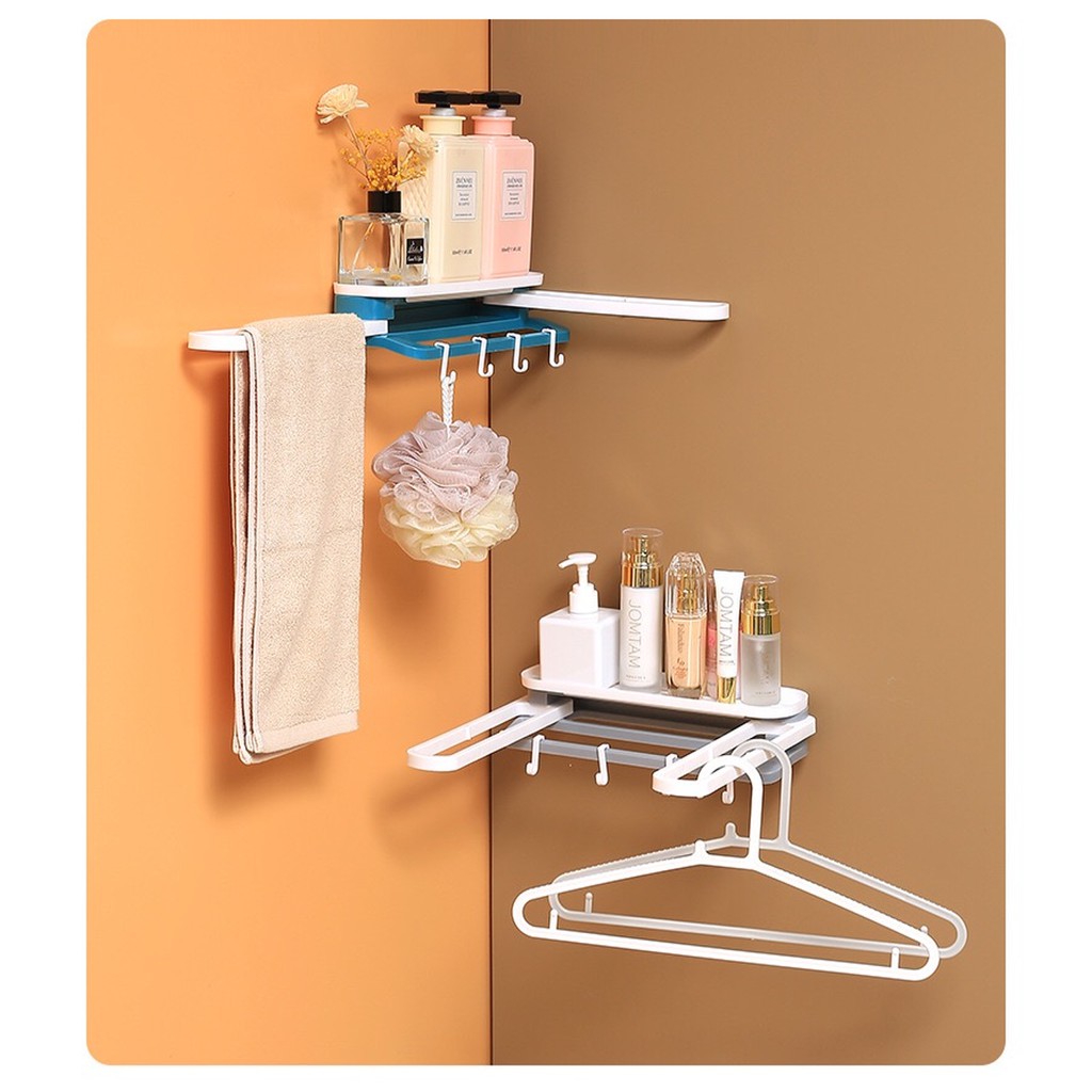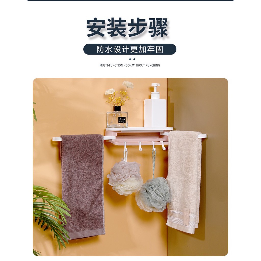 - Kệ Dán Tường Nhà Tắm Nhà Bếp Có Thanh Treo Khăn Xoay Thông Minh Có Thể Gấp Gọn 3in1 phù hợp với phòng tắm hay nhà bếp nơi có quá nhiều đồ đạc cần được sắp xếp gọn gàng- Kệ được phối 2 màu xinh xắn tô điểm cho căn phòng.