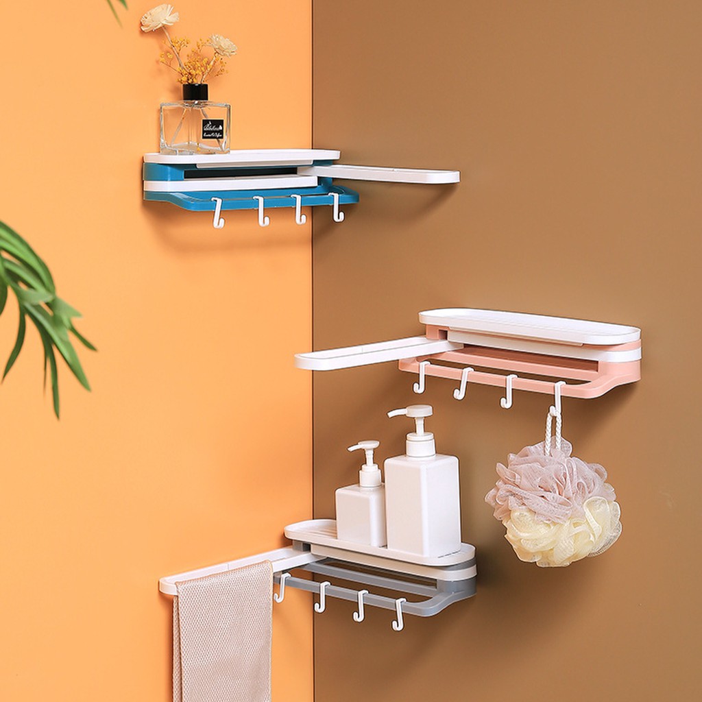 - Kệ Dán Tường Nhà Tắm Nhà Bếp Có Thanh Treo Khăn Xoay Thông Minh Có Thể Gấp Gọn 3in1 phù hợp với phòng tắm hay nhà bếp nơi có quá nhiều đồ đạc cần được sắp xếp gọn gàng- Kệ được phối 2 màu xinh xắn tô điểm cho căn phòng.
