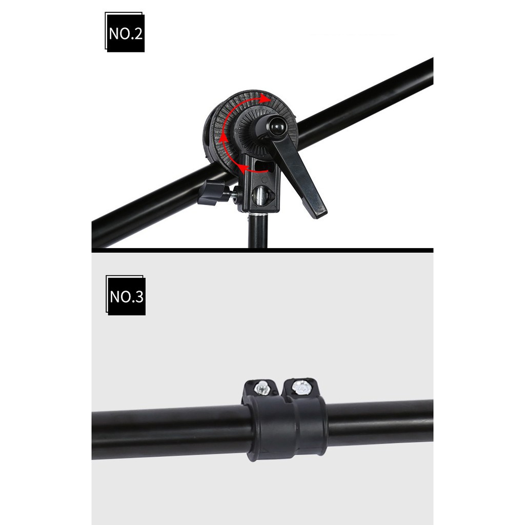 THÔNG TIN SẢN PHẨM- Tay treo đèn chụp ảnh được làm từ chất liệu nhôm và nhựa ABS cứng rất chắc chắn, các ống nhôm có đường kính là 22mm và 25mm