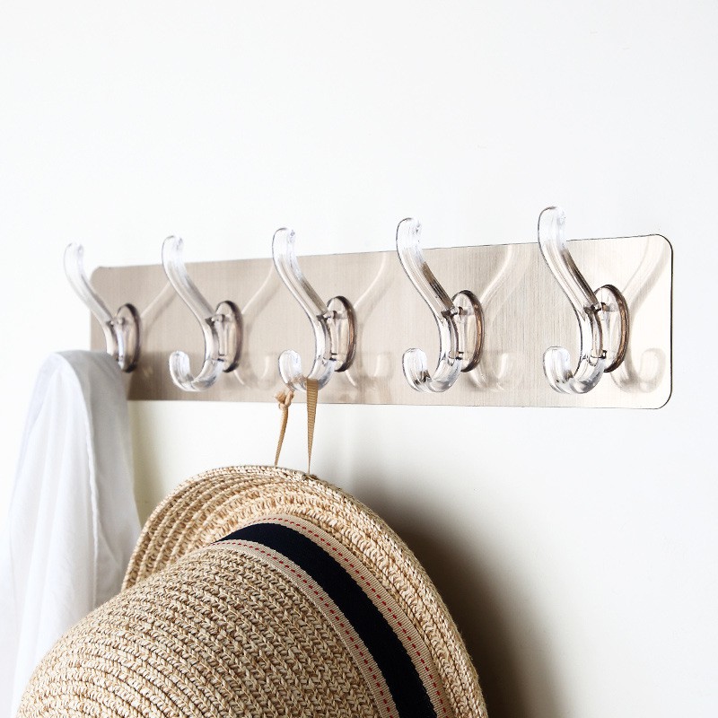 Thanh Treo Đồ Dán Tường 6 Móc Đa Năng, Liền Mạch Trong Suốt Siêu Dính, Bền