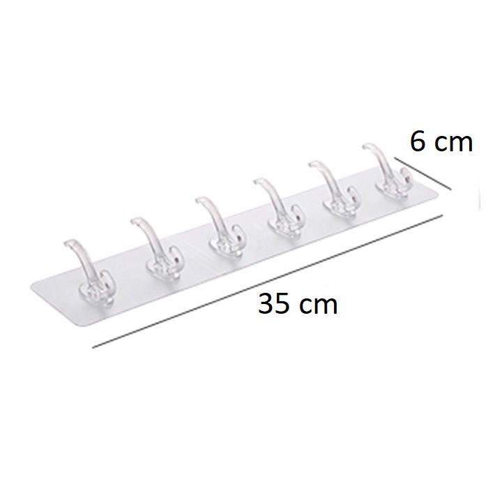 Thanh Treo Đồ Dán Tường 6 Móc Liền Mạch Trong Suốt Siêu Chắc