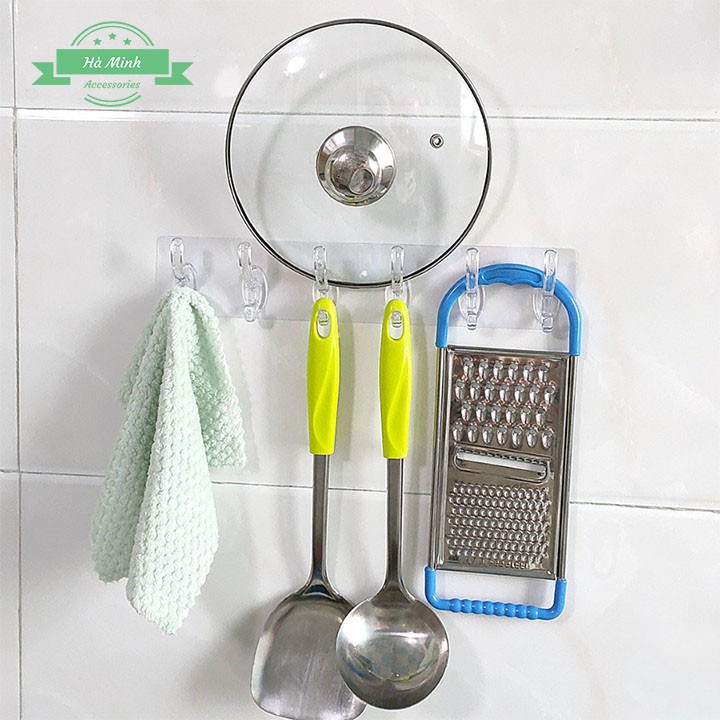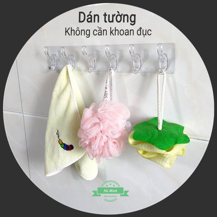 Thanh Treo Dán Tường 6 Móc Liền Mạch Trong Suốt Siêu Dính=================