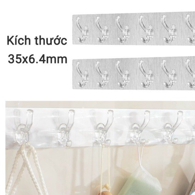 Thanh Treo Dán Tường 6 Móc Liền Mạch Trong Suốt Siêu Dính=================