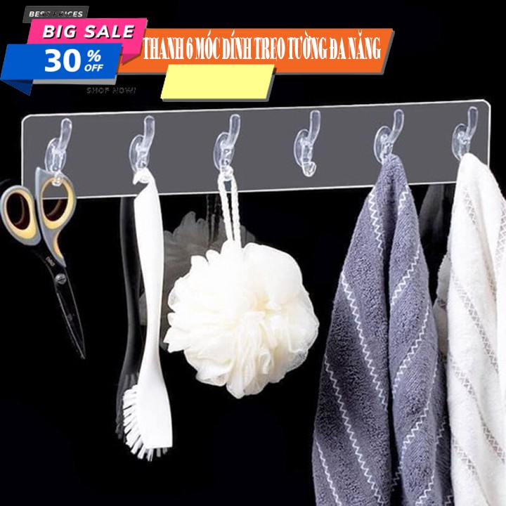 Thanh Treo Đồ Móc Treo Đồ Dán Tường Đa Năng 6 Móc (trong suốt)[HOT DEAL GIẢM GIÁ SỐC]