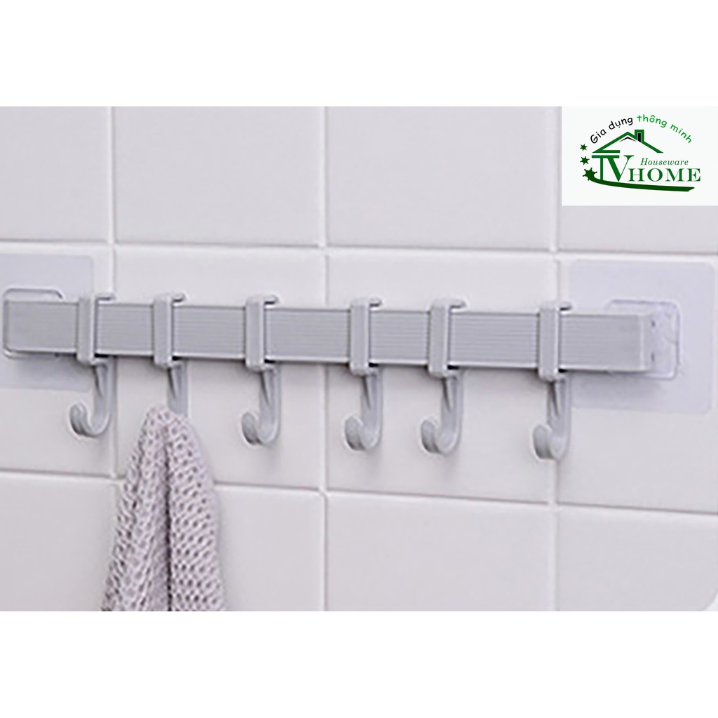 - Móc treo là 1 Thanh dài gồm 6 móc treo đa năng treo được nhiều vật dụng cùng lúc, tái sử dụng dễ dàng bằng cách rửa và lau khô.