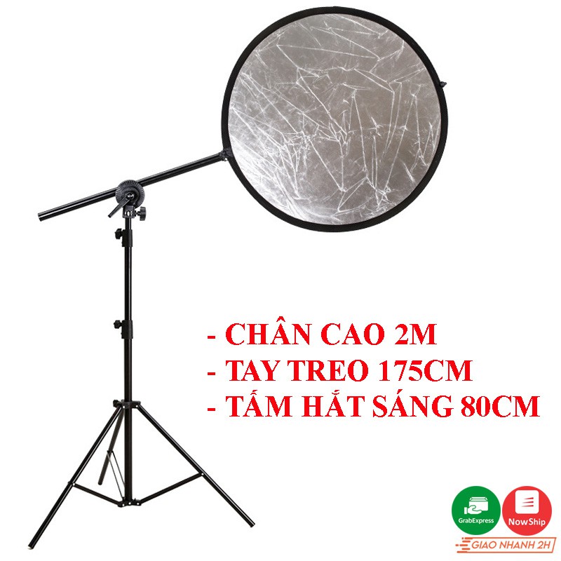 Tay treo giá đỡ tấm hắt sáng cho studio chuyên nghiệp tiện dụng, bộ gồm chân cao 2m, tay treo 175cm và tấm hắt sáng 80cm
