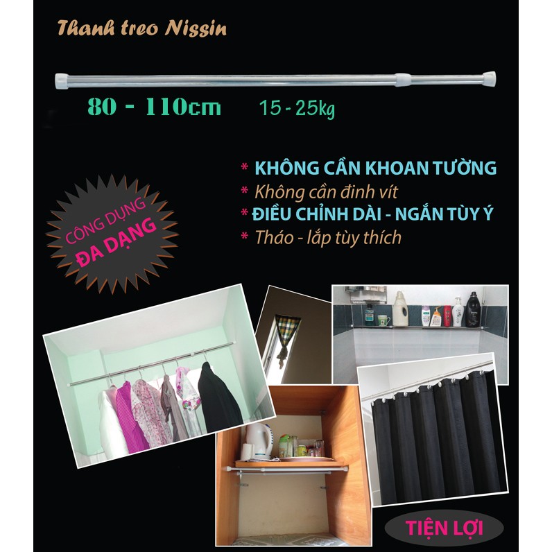 Thanh Treo Inox Đa Năng Nissin 80-110cm