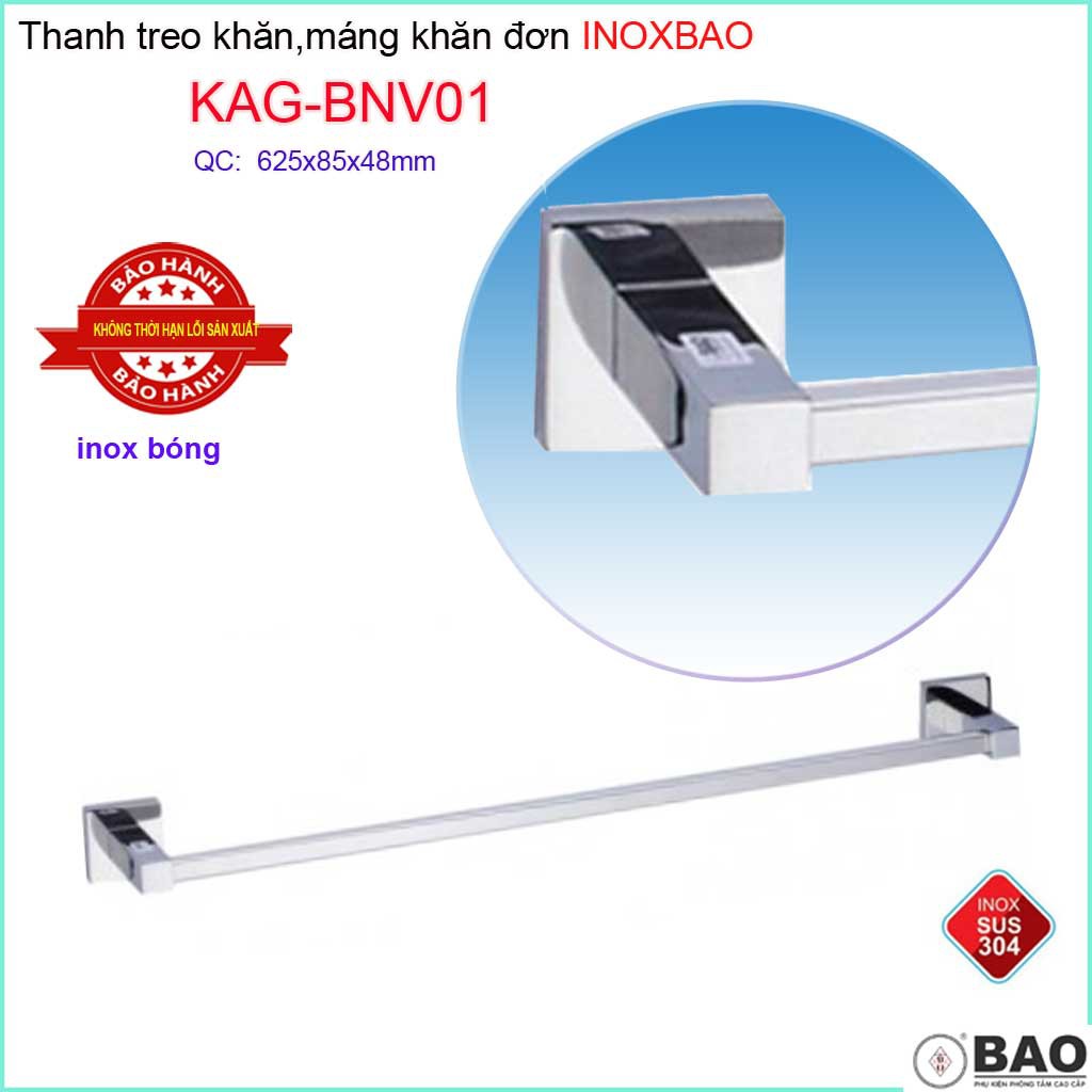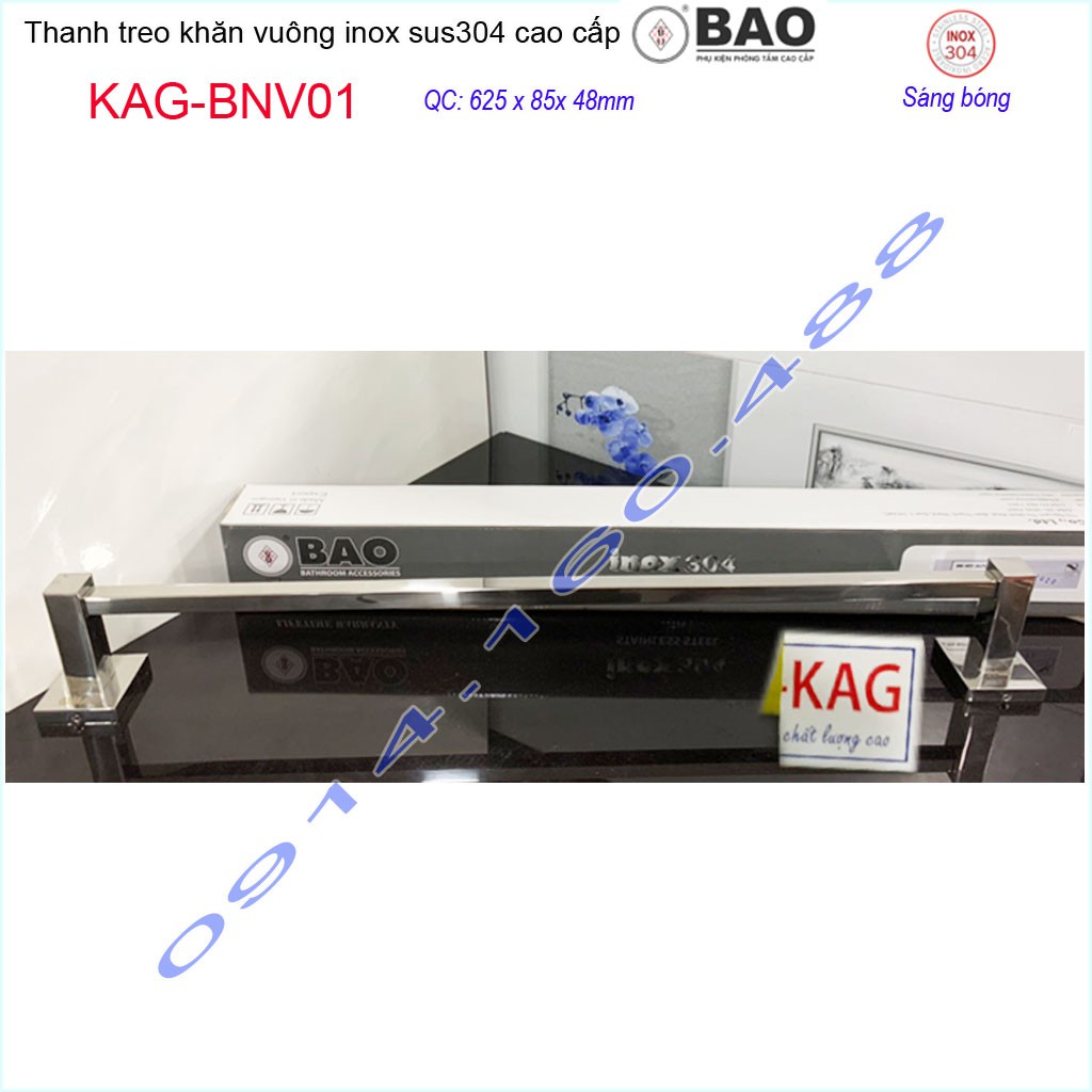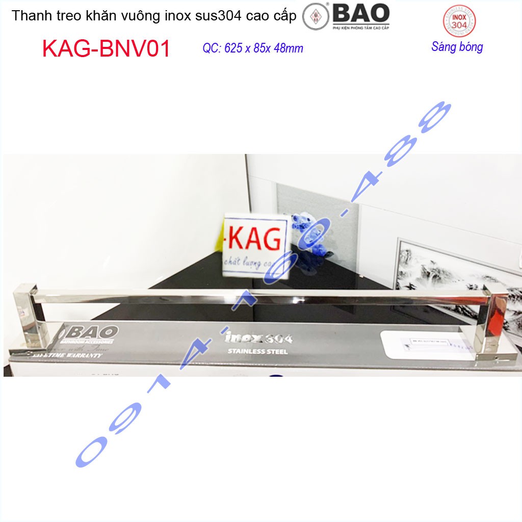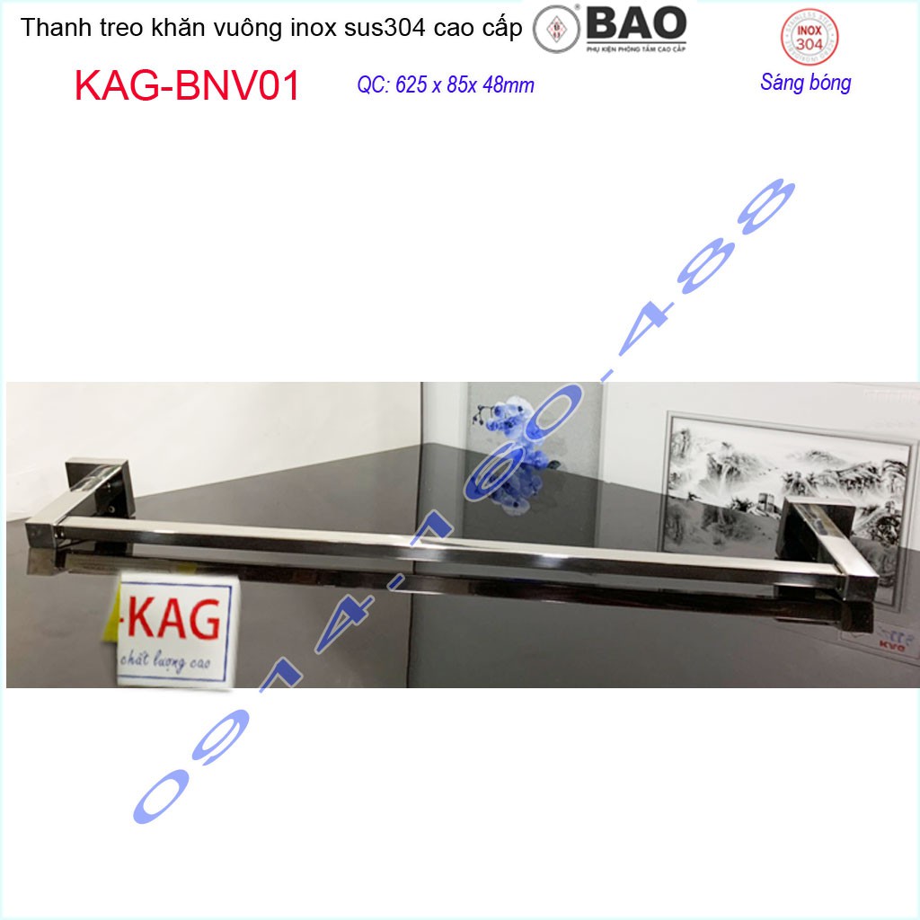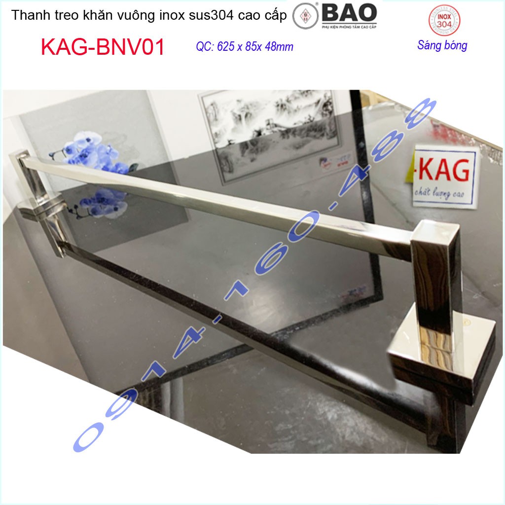 Thanh treo khăn Inox Bảo KAG-BNV01, máng khăn SUS304 đế đúc vuông cao cấp thiết kế tuyệt đẹpKích thước dài 625x rộng 85 x cao 48mm