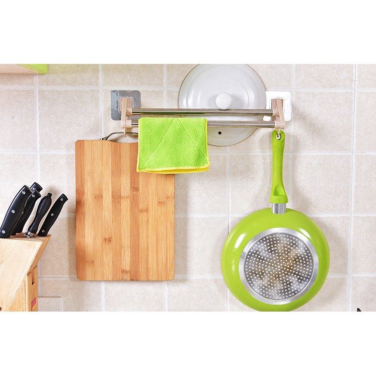 Dụng cụ treo khăn mặt với miếng dán siêu dính không cần khoan đục vô cùng tiện lợi, nhanh chóng và bền đẹp.Có thể hít dính bất cứ đâu với gạch men, kính... trong nhà bếp, nhà tắm.