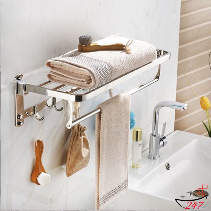 => Vừa móc, vùa treo khăn, vừa xếp khăn hay để đồ dùng lên trên. Quá nhiều công năng tiện lợi trên cùng một sản phẩm. Phù hợp với phòng tắm của mọi gia đình.