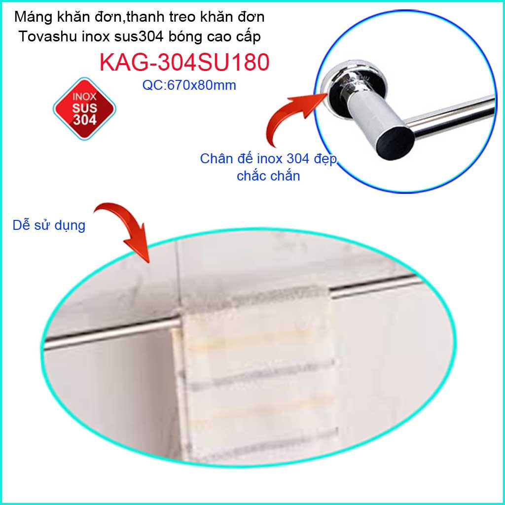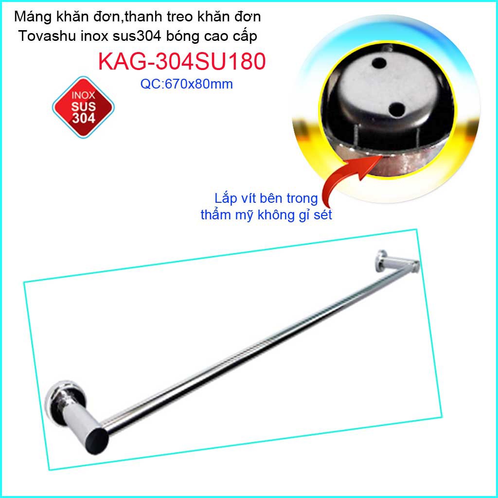 Giới thiệu Thanh treo khăn tắm Tovashu KAG-304SU180, Giá treo khăn phòng tắm Inox hộp cao cấp SUS304 Nhật Bản