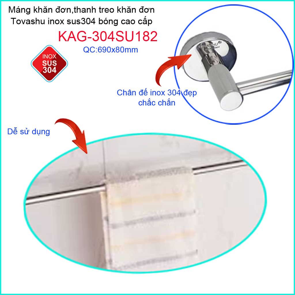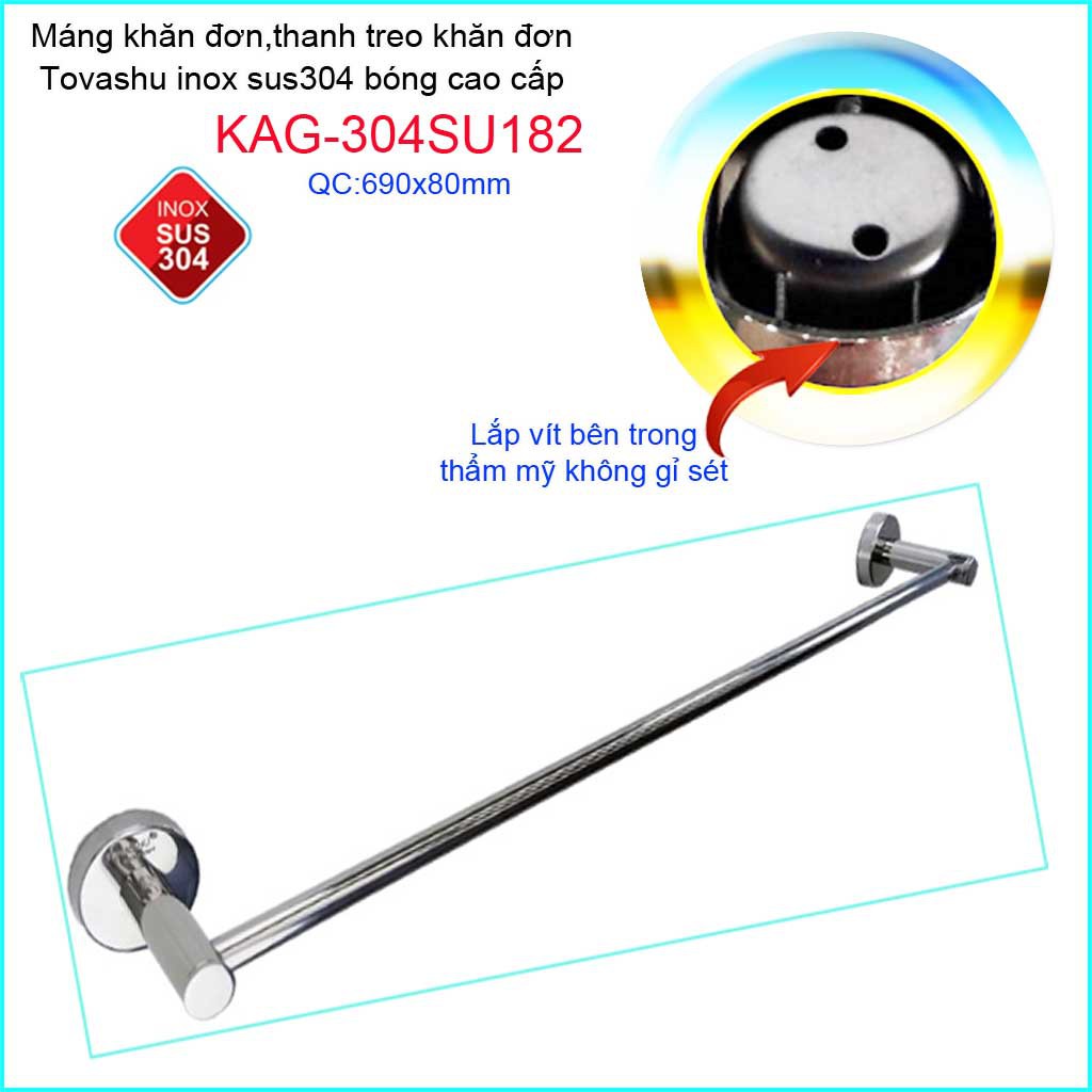 Giới thiệu Thanh treo khăn tắm Tovashu KAG-304SU182, Giá treo khăn phòng tắm Inox hộp cao cấp SUS304 Nhật Bản