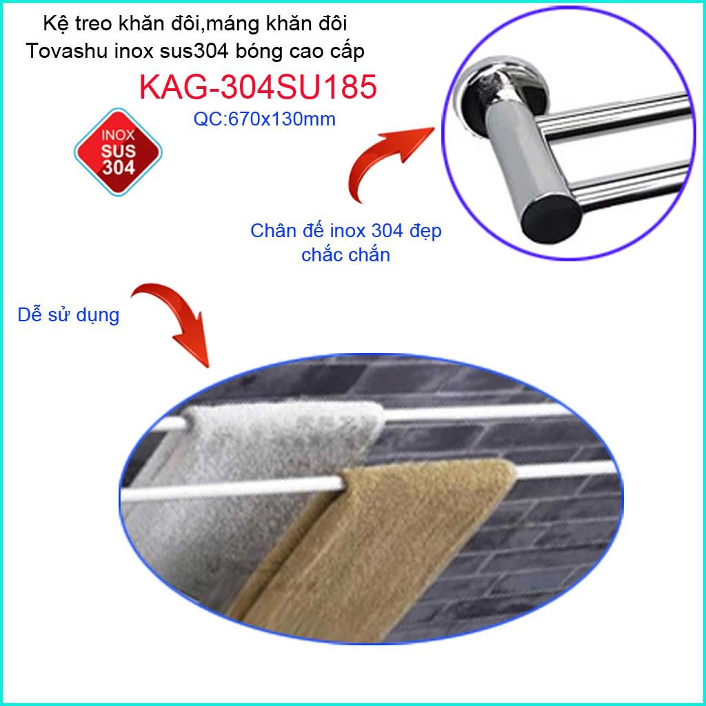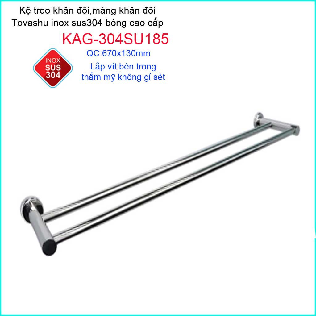 Giới thiệu Thanh treo khăn tắm Tovashu KAG-304SU185, Giá treo khăn phòng tắm Inox hộp cao cấp SUS304 Nhật Bản