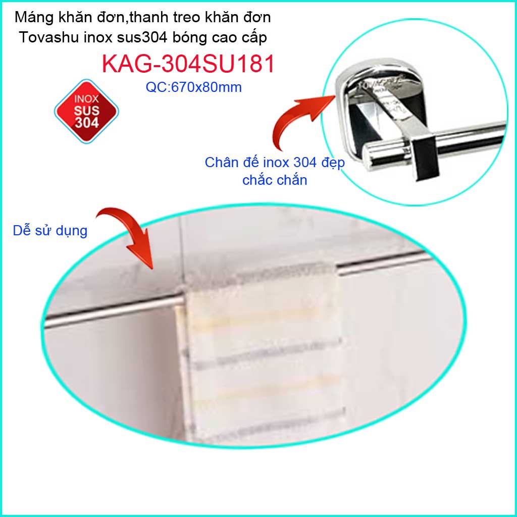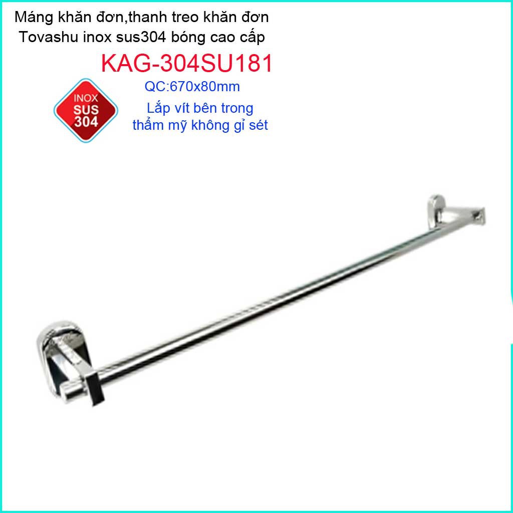 Giới thiệu Thanh treo khăn tắm Tovashu KAG-304SU181, Giá treo khăn phòng tắm Inox hộp cao cấp SUS304 Nhật Bản