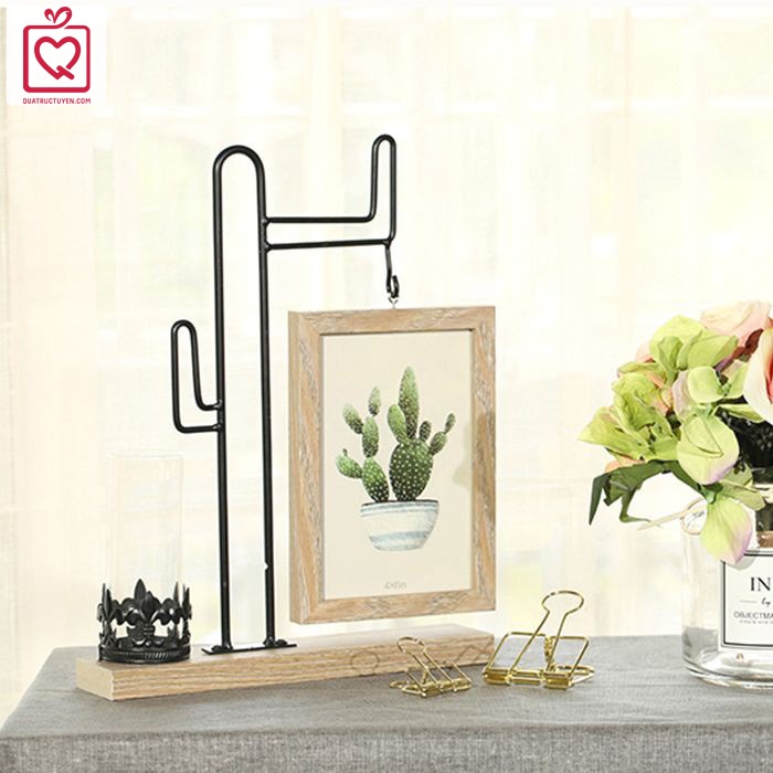 Sản phẩm thiết kế độc đáo với sự kết hợp của lọ hoa và cây sắt treo khung ảnh gỗ 2 mặt. Bức ảnh sẽ trở lên ấn tượng hơn khi bên cạnh có những bông hoa tươi thắm.