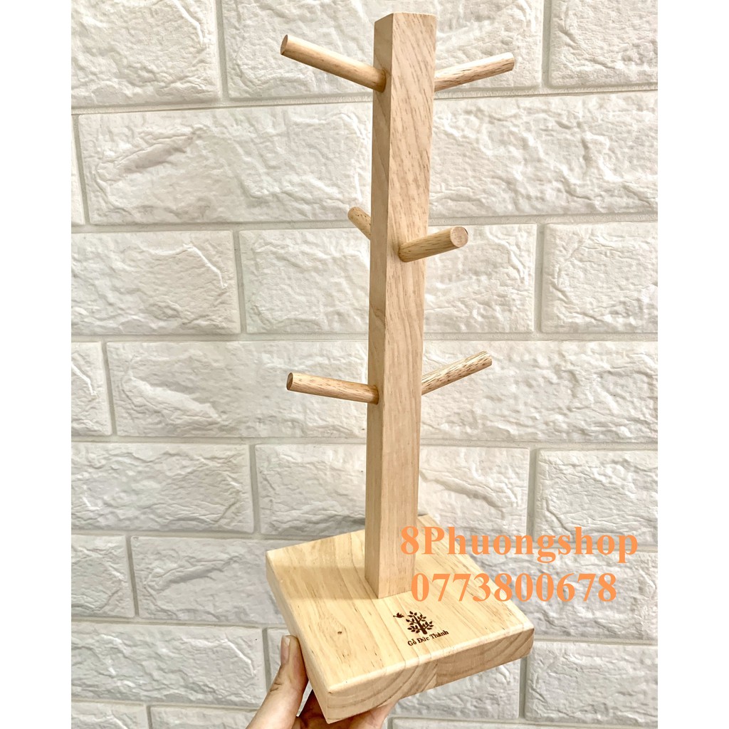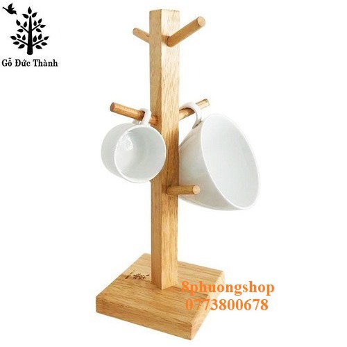 Cây treo ly Gỗ Đức Thành 22041 có 6 giá treo - Cây treo ly thân vuông Đức Thành tiện lợi