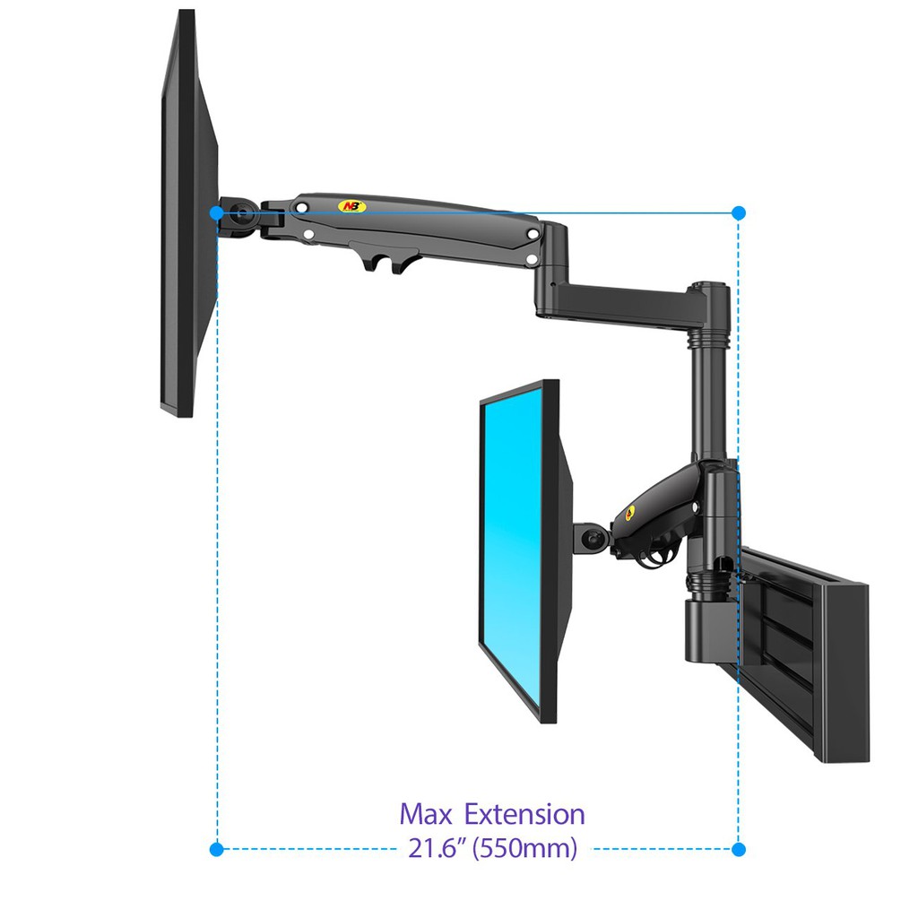 Treo màn 2 hình máy tính trên dưới M80 22-32inch, 2 màn hình 32 inch, tải trọng 12kg mỗi cánh tay, phù hợp nhà xưởng sx