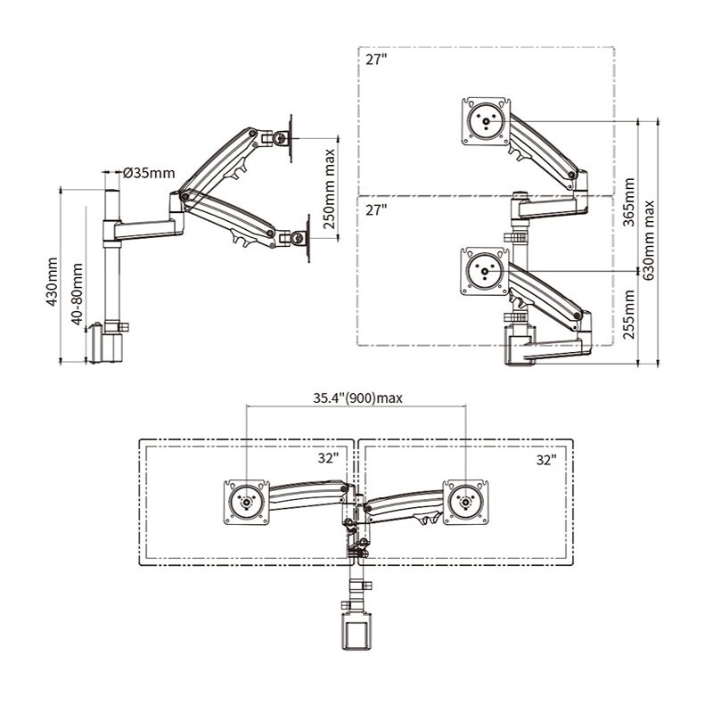 Giới thiệu Treo màn 2 hình máy tính trên dưới M80 22-32inch, 2 màn hình 32 inch, tải trọng 12kg mỗi cánh tay, phù hợp nhà xưởng sx
