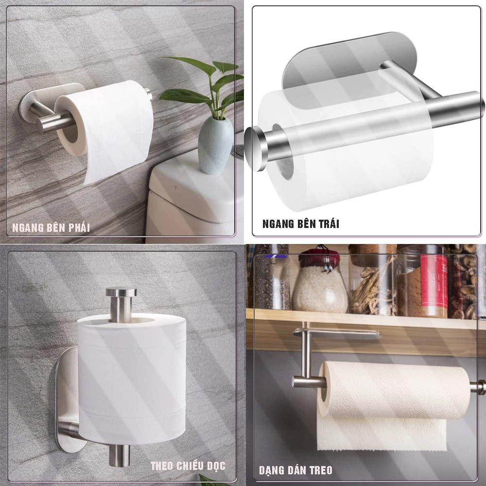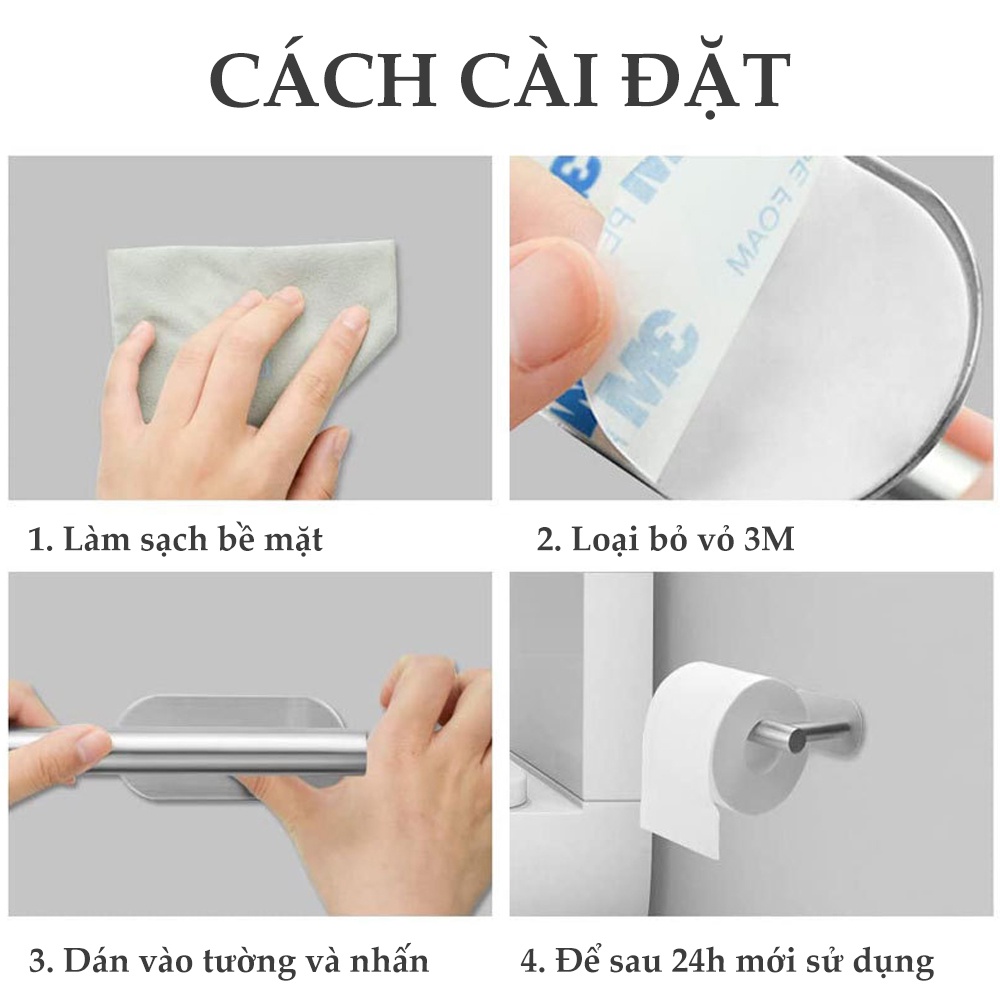 Thanh treo móc đồ giấy vệ sinh, khăn giấy inox 304 dùng miếng dính 3m không cần khoan Minh House