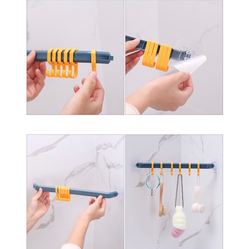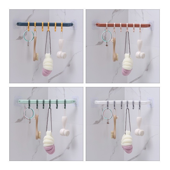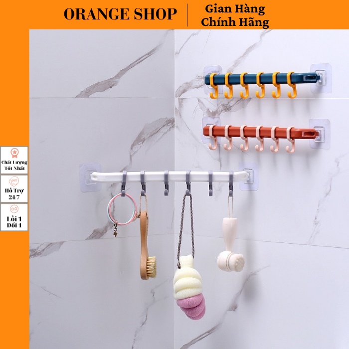 Thanh treo nhà tắm dán tường 6 móc dán Giá treo quần áo dán tường bằng nhựa dán tủ quần áo nhà tắm đa năng Orange S