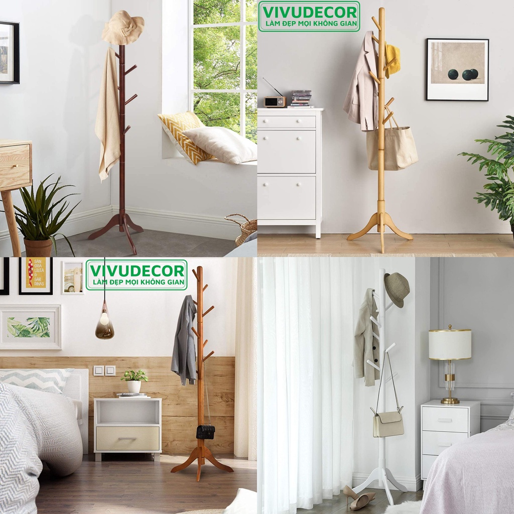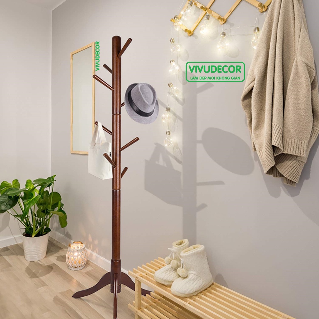 Cây Treo Quần Áo 100% Gỗ Tự Nhiên Vivudecor, Cây Treo Đồ ST 8 Nhánh Lắp Ráp Xuất Khẩu Hàn Quốc.