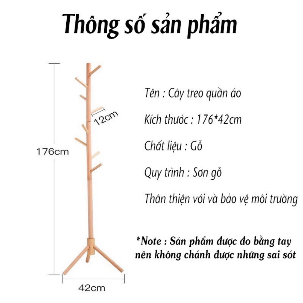 CÔNG DỤNG:- Cây treo quần áo dùng để treo và móc giữ quần áo, mũ thay vì lưu trữ mọi thứ trong tủ quần áo của bạn.
