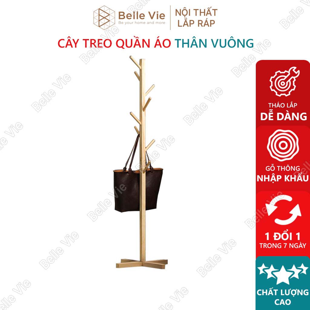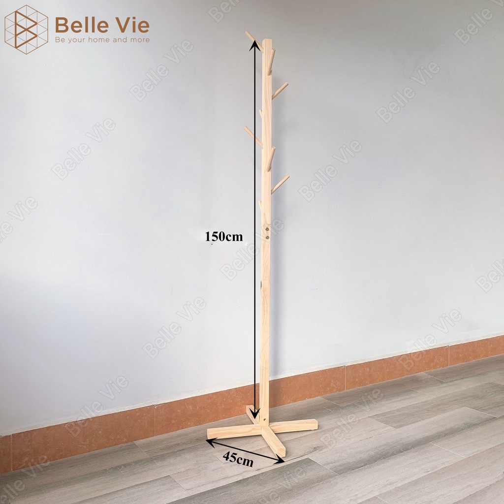 Hàng có sẵnCây Treo Quần Áo Đứng Gỗ Thông BELLEVIE Móc Quần Áo Gỗ Thiết Kế Lắp Ráp Hiện Đại