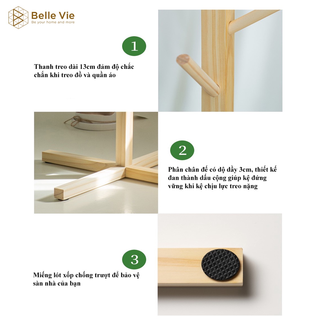 Giới thiệu Cây Treo Quần Áo Đứng Gỗ Thông BELLEVIE Móc Quần Áo Gỗ Thiết Kế Lắp Ráp Hiện Đại